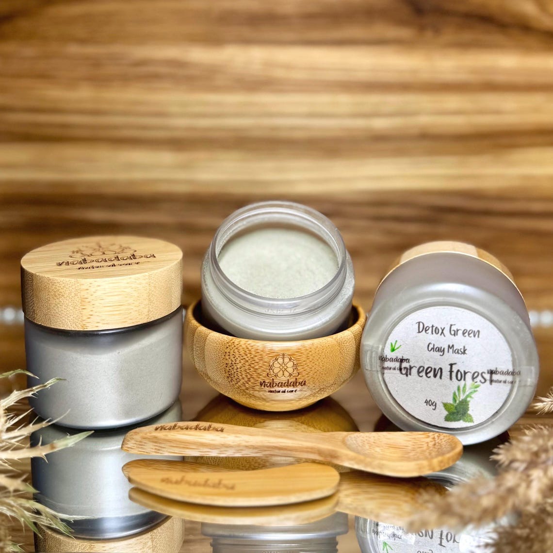 Detox Green Clay Face Mask – For Oily, Combination & Dull Skin | Natural Clay Mask with Nettle & Olive Leaf | Purifying Skincare Ritual – 40gnnRefresh. Balance. Glow.nGive your skin the care it craves with our Detox Green Clay Face Mask – a purifying botanical blend designed to deeply cleanse, balance oil production, and revitalize tired, dull skin.nn✨ Perfect for:n✔ Oily skinn✔ Combination skinn✔ Dull, congested complexionn✔ Natural skincare loversnnKey Benefits:n Draws out impurities and toxinsn Reduces excess oil without over-dryingn Promotes a healthy, radiant glown Made with 100% natural plant powders and mineral-rich claynnIngredients:nSuperfine Illite Green Clay – Gently detoxifies and exfoliates without irritationnNettle Leaf Powder (Urtica dioica) – Rich in antioxidants, helps calm inflammation and improve skin claritynOlive Leaf Powder (Olea europaea) – Soothes skin and provides natural antibacterial propertiesnCucumber Powder (Cucumis sativus) – Hydrates, cools, and refreshes the skinnnSize: 40g (approx. 8–10 applications)n Optional Add-On: Bamboo Bowl with Spoon & Spatula – the perfect set for mixing your mask in style!nnHow to Use:nIn a clean bowl, combine 3 tsp of clay with 2 tsp of floral water. Add water slowly until you reach a creamy consistency.nApply evenly to clean face, avoiding eyes and lips. Mist occasionally with floral water to keep the mask hydrated.nAfter 10–15 minutes, rinse gently with warm water. Pat dry and follow with your favorite toner and facial oil for best results.