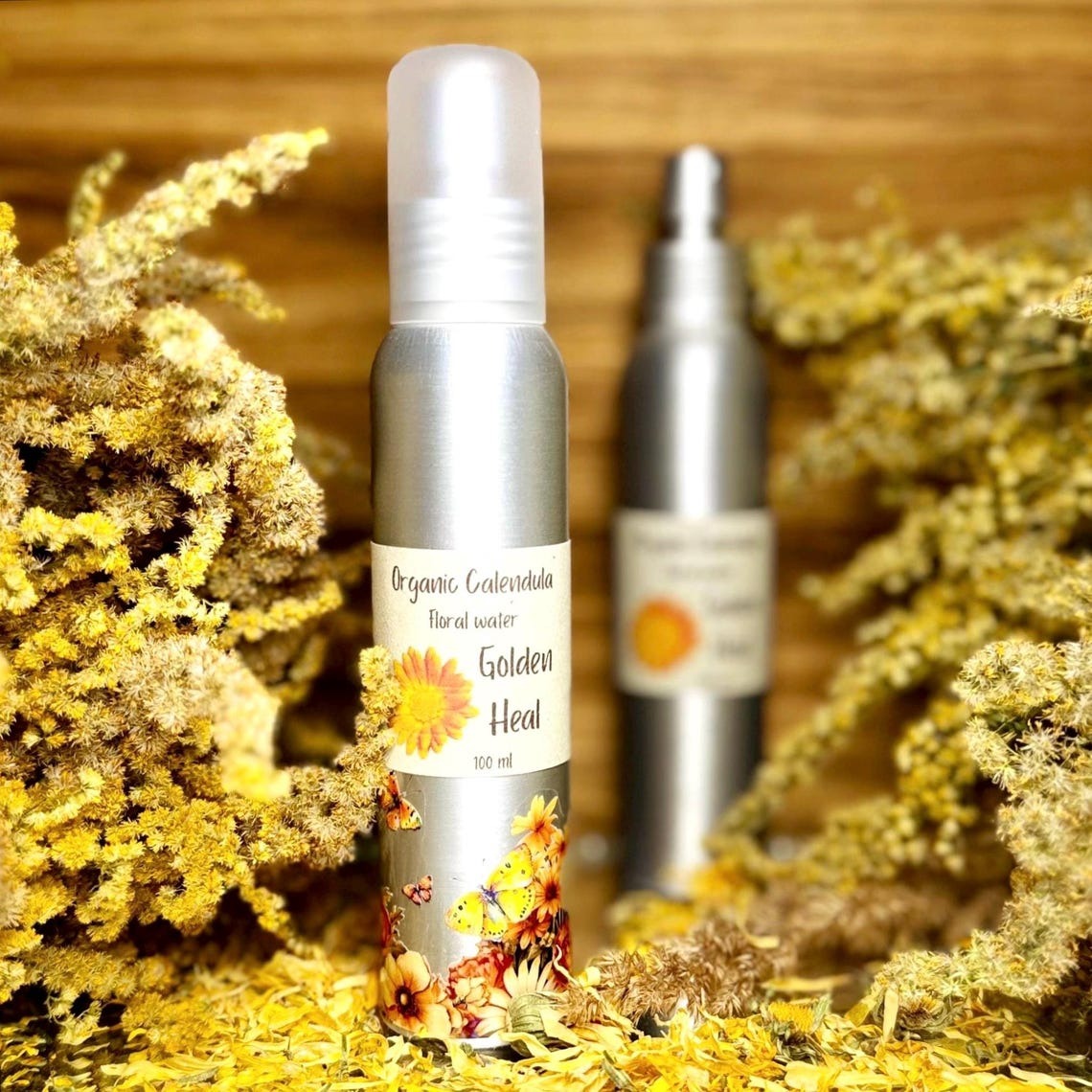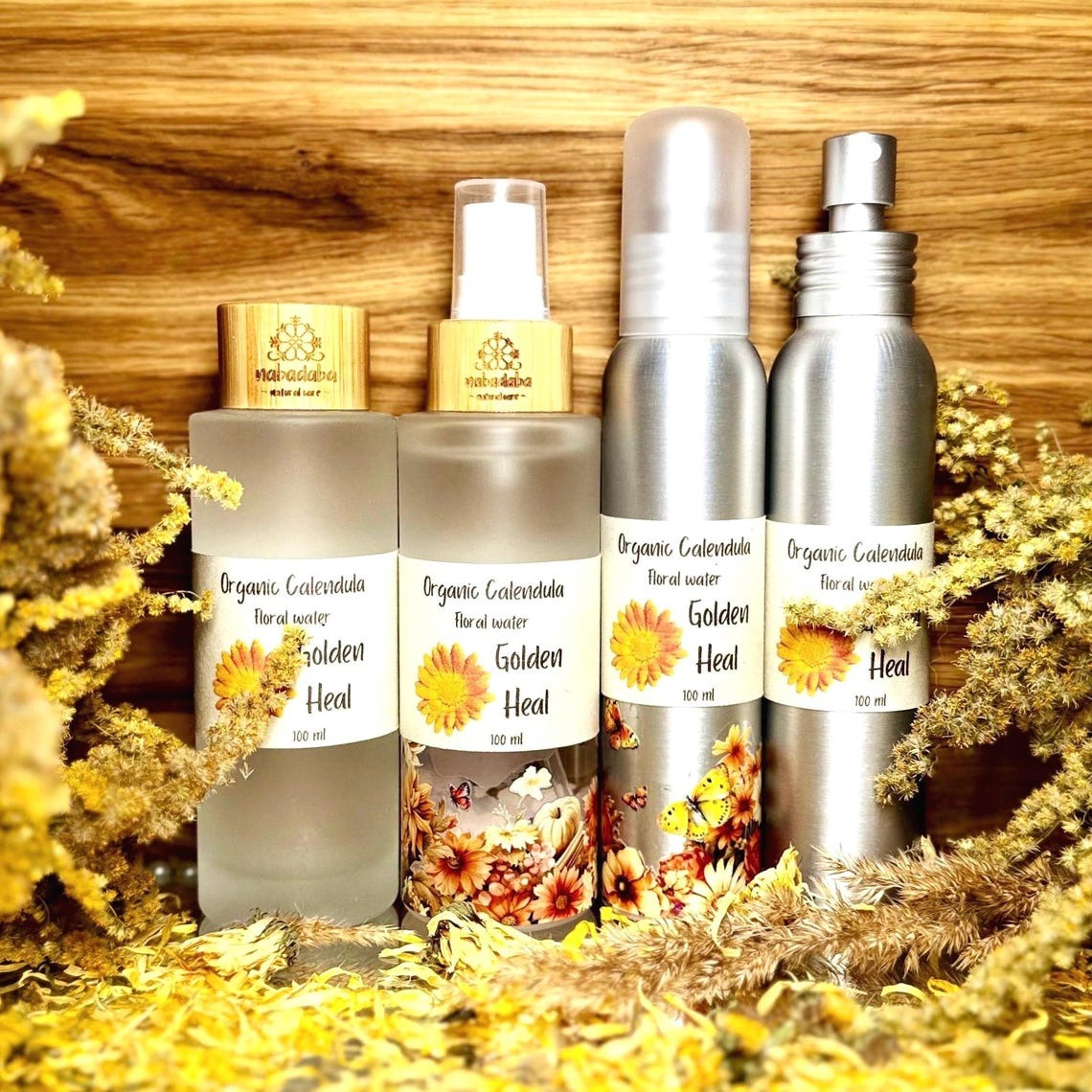Nurture your skin with the soothing power of our Organic Calendula Hydrosol ️ distilled from vibrant Marigold flowers. This gentle floral water is perfect for fragile, irritated, or damaged skin, providing restorative care and calming relief nnSuitable for all skin types, it refreshes as a facial mist and tones naturally as a skin toner. Enhance your skincare routine by mixing it with our clay masks for deeper nourishment and revitalization ✨nnAvailable in a lightweight aluminum bottle for easy portability or a glass bottle ideal for longer storage in the fridge.nn✔️ Certified Organicn✔️ 100% Natural Preservativen✔️ Vegan & Cruelty-Free n✔️ Soothing & Restorative Floral Water