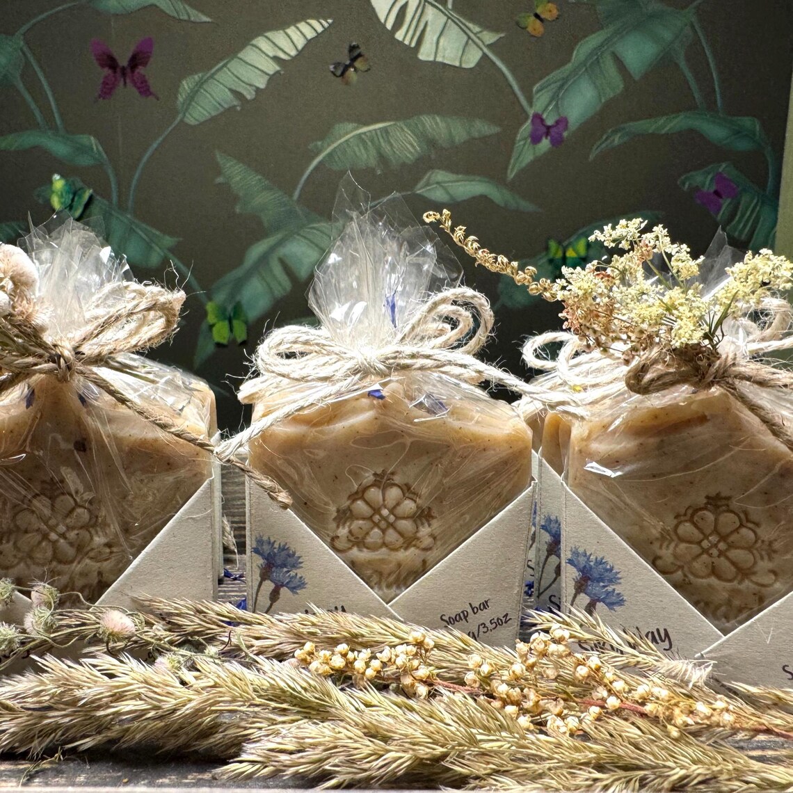 Our most delicate soap bar, made with fresh organic goat milk and colloidal oatmeal, without essential oils, scented with natural milk fragrance and vanilla bean powder. And it has 45 % of creamy butters in it!nn100g/3.5oz soap bars made with cold saponification of: coconut oil, shea butter, cocoa butter, grapeseed oil, castor oil.nAdditives: organic goat milk, colloidal oatmeal, Aloe Vera.nScented with: Vanilla bean, Natural milk fragrance.nnIn our product packaging we use certified biodegradable/compostable clear cellulose film and recycled paper. Products are sent in carton boxes within degradable mailing bags. Boxes are filled with wood wool for protecting of goods during their way to You.nWe care about our Planet!