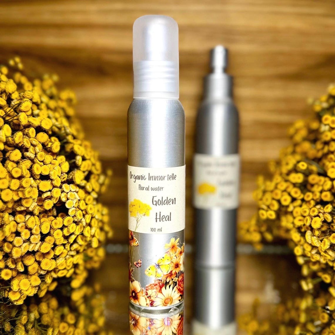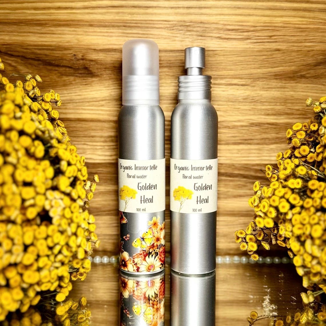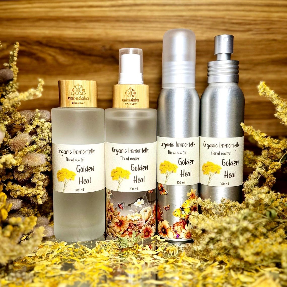 Experience the natural luxury of Organic Helichrysum (Immortelle) Hydrosol, a premium floral water steam-distilled from Helichrysum italicum flowers grown in Corsica. Known as the “everlasting flower,” this hydrosol makes a gentle and refreshing facial mist and toner suitable for all skin types—including sensitive, mature, or delicate skin.nnThis botanical water offers a calming and uplifting sensation, perfect for daily use to hydrate and revitalize your skin’s natural appearance. Use it as a refreshing mist throughout the day, a soothing toner after cleansing, or blend it with clay masks to enhance your skincare ritual.nnChoose between a lightweight aluminum spray bottle for convenient on-the-go use or a semi-transparent glass bottle ideal for storing in the fridge. For personalized skincare, try pairing it with our Ylang-Ylang or Calendula floral waters.nn✔️ 100% Pure & Naturaln✔️ Ecocert Certified Preservativen✔️ Suitable for Daily Use & All Skin Typesn✔️ Custom Floral Water Blends Available Upon Request