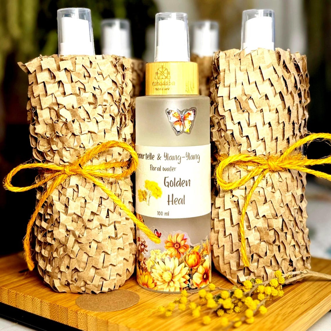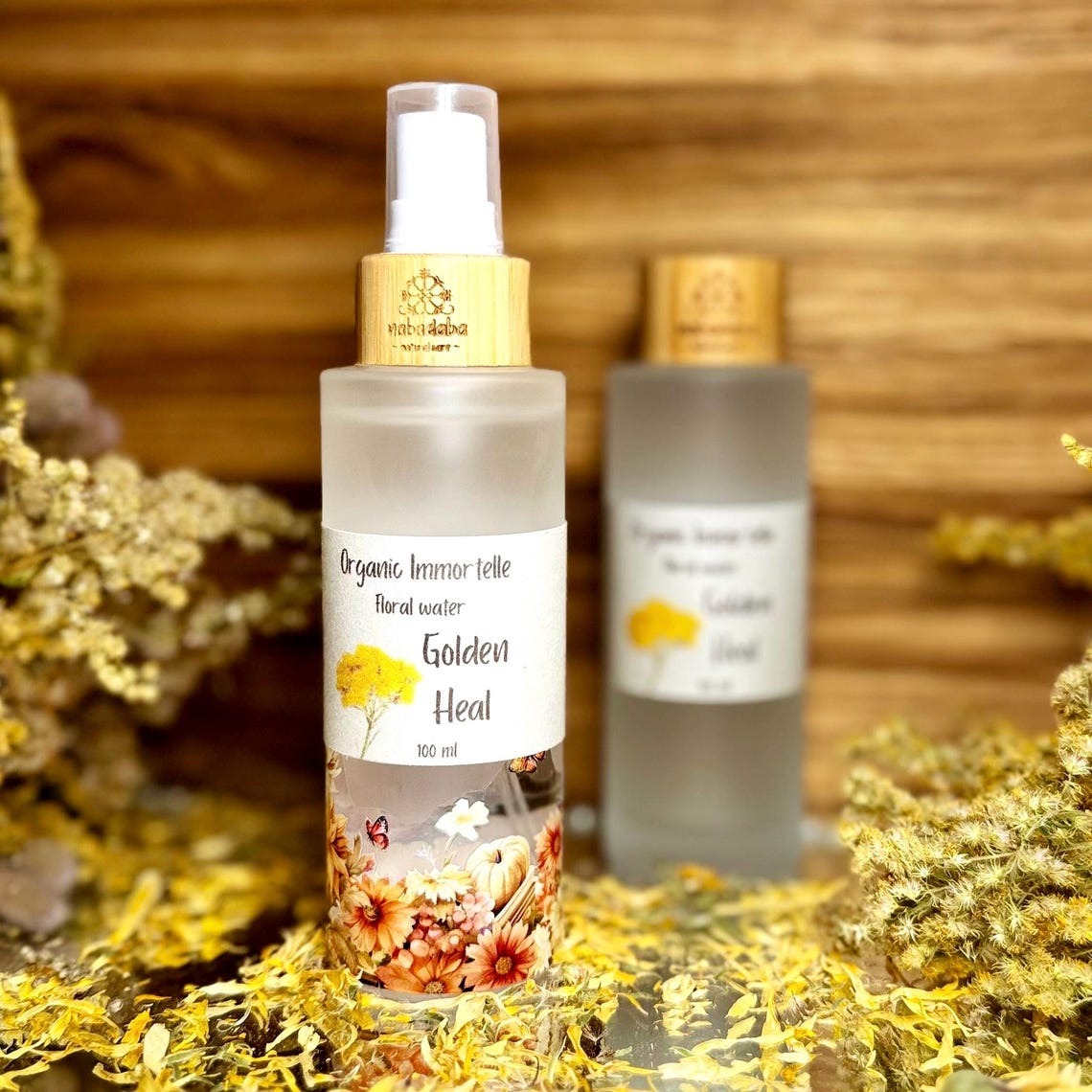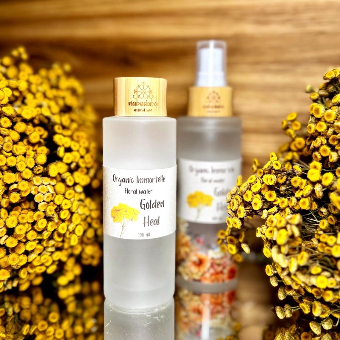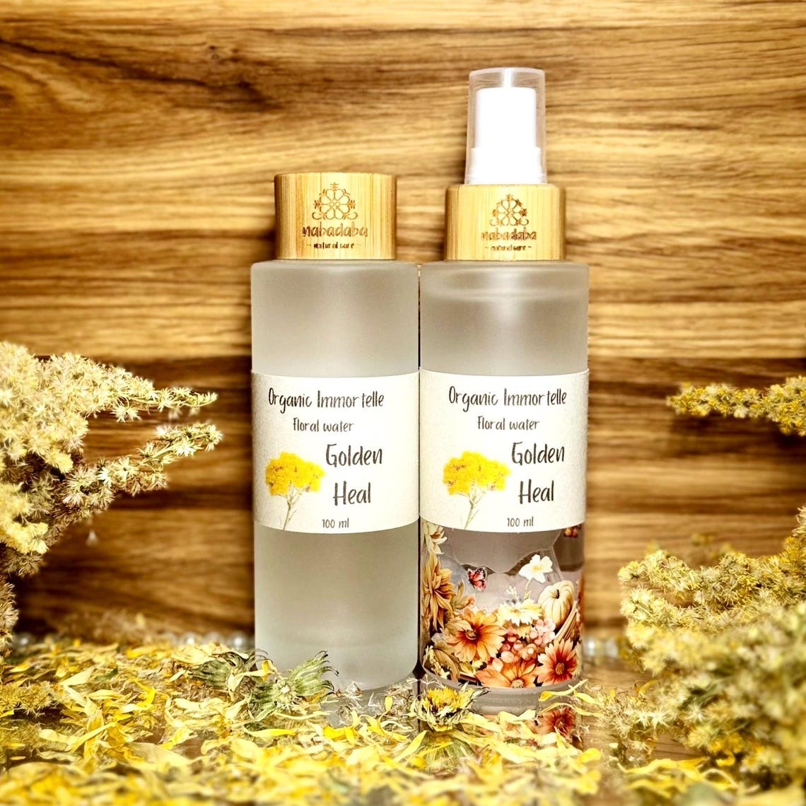 Experience the natural luxury of Organic Helichrysum (Immortelle) Hydrosol, a premium floral water steam-distilled from Helichrysum italicum flowers grown in Corsica. Known as the “everlasting flower,” this hydrosol makes a gentle and refreshing facial mist and toner suitable for all skin types—including sensitive, mature, or delicate skin.nnThis botanical water offers a calming and uplifting sensation, perfect for daily use to hydrate and revitalize your skin’s natural appearance. Use it as a refreshing mist throughout the day, a soothing toner after cleansing, or blend it with clay masks to enhance your skincare ritual.nnChoose between a lightweight aluminum spray bottle for convenient on-the-go use or a semi-transparent glass bottle ideal for storing in the fridge. For personalized skincare, try pairing it with our Ylang-Ylang or Calendula floral waters.nn✔️ 100% Pure & Naturaln✔️ Ecocert Certified Preservativen✔️ Suitable for Daily Use & All Skin Typesn✔️ Custom Floral Water Blends Available Upon Request
