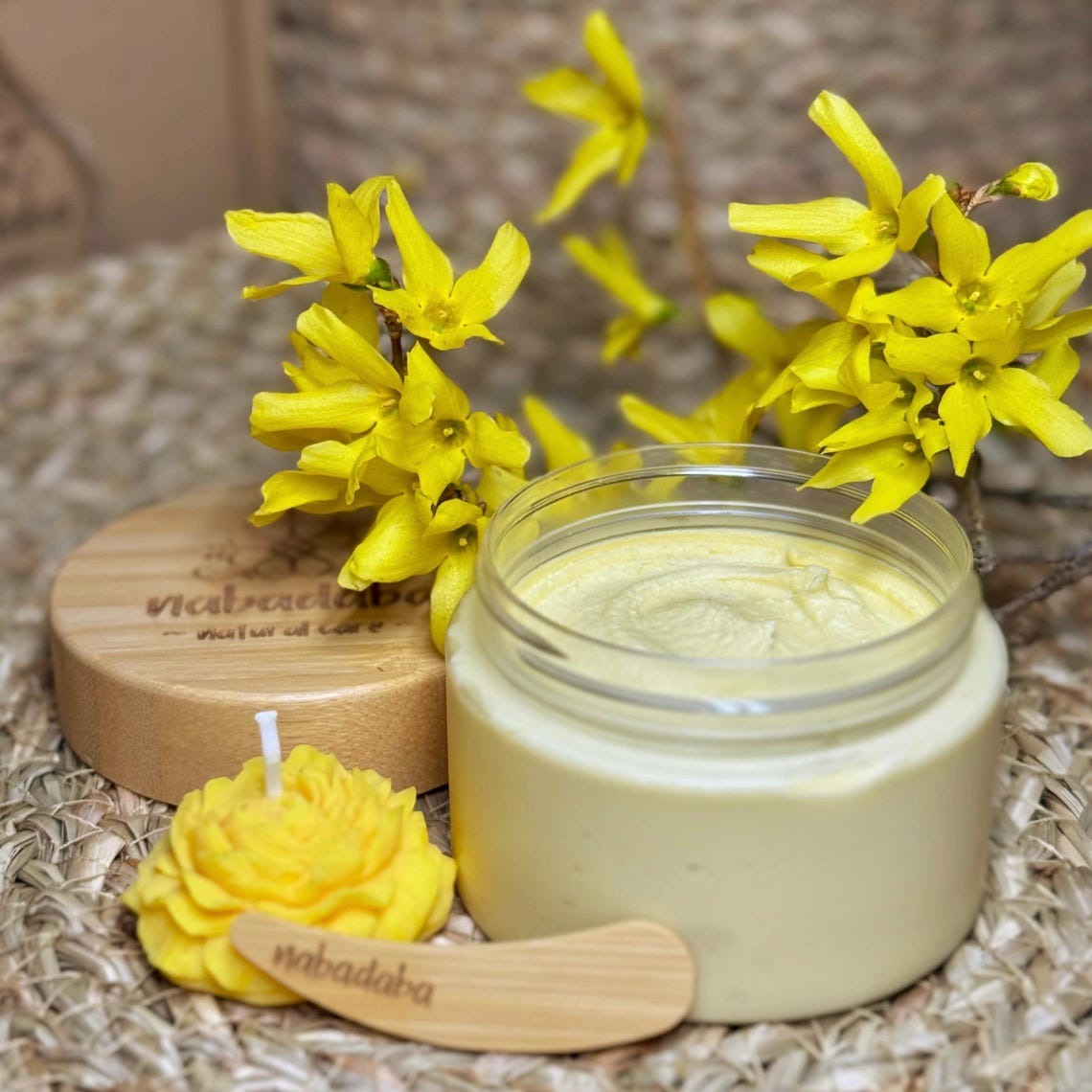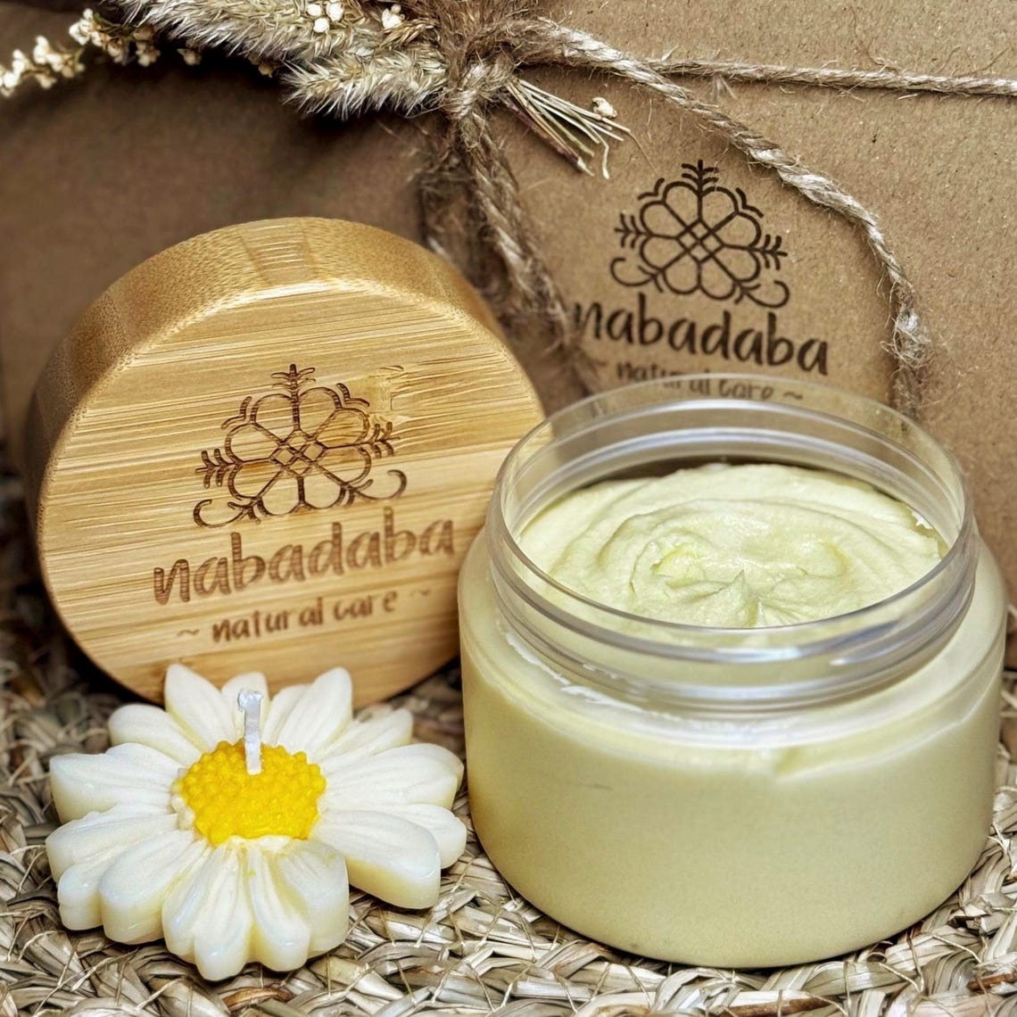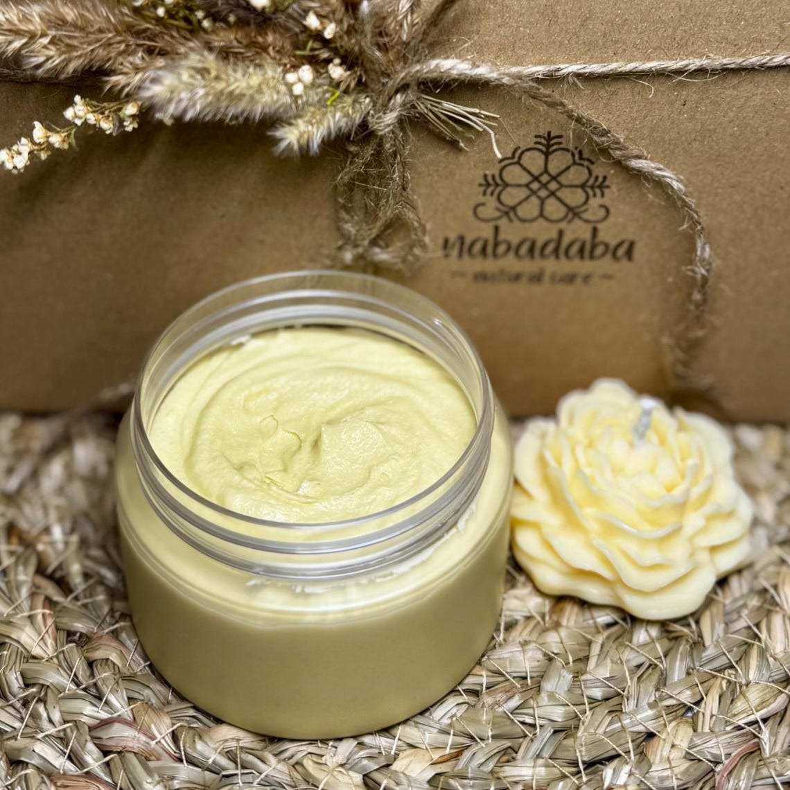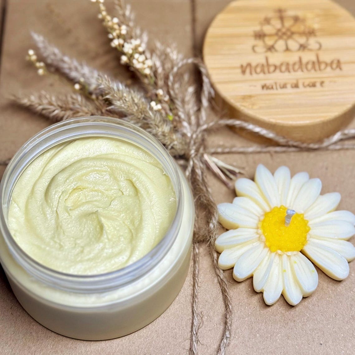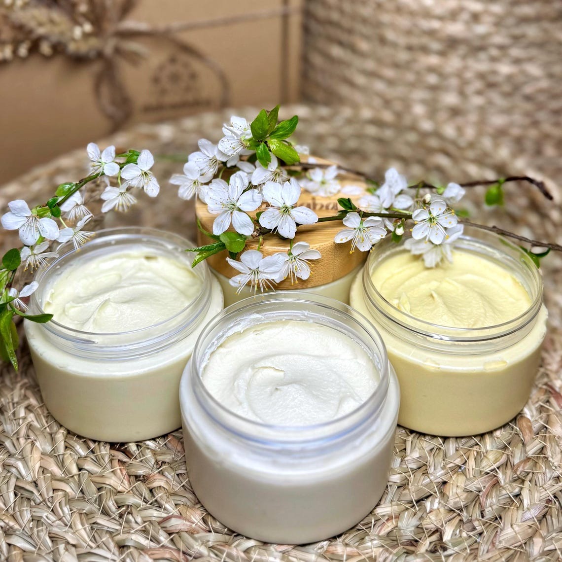 Organic Whipped Shea Butter with Sea Buckthorn & Calendula | Nourishing, Soothing Body Butter in Eco-Friendly PackagingnDelight your skin with our luxuriously smooth whipped shea butter, enriched with nutrient-rich sea buckthorn and calming calendula infusions. This blend is packed with vitamins and unsaponifiables, providing deep hydration and soothing care for dry, sensitive, or mature skin.nn Key Ingredients:n• Organic Virgin Shea Butter (Ghana) – Rich in vitamins A & E, deeply moisturizingn• Sea Buckthorn-Infused Extra Virgin Olive Oil – Antioxidant-rich and rejuvenatingn• Calendula-Infused Sunflower Seed Oil – Soothes irritation and supports skin healingn• Vitamin E & Organic Bisabolol – Natural antioxidants and calming plant extractsnn Packaging Options:nAvailable inn• 100g PET jar with bamboo lid for lightweight, eco-friendly usen• 60g Glass jar with bamboo lid for reusable, elegant storagenn Eco-Friendly Packaging:nWe are committed to sustainability — your shea butter is shipped in recyclable jars with bamboo lids, packaged in cardboard boxes and biodegradable mailing bags with wood wool cushioning to protect your order and the planet.nn Customization Available:nWant to personalize your butter? Choose from a wide selection of natural essential oils and aromas—just ask!nn Why You’ll Love It:n• 100% Organic, Vegan, and Cruelty-Freen• Free of synthetic additives, parabens, and preservativesn• Ideal for sensitive, dry, or irritated skinn• Perfect for daily moisturizing or gifting to loved ones