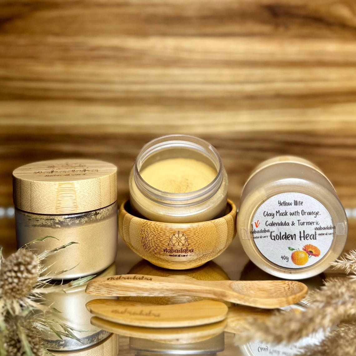 Yellow Illite Clay Face Mask for Oily, Combination & Dull Skin | Natural Detox with Turmeric, Calendula & Orange – 40gnReveal your skin’s natural glow with our Yellow Illite Clay Mask, a powerful yet gentle detox designed for oily, mixed, and dull skin types. This 100% natural, vegan face mask is enriched with botanical powders to purify, calm, and brighten your skin—leaving you with a radiant, refreshed complexion.nn Key Ingredients:n• Yellow Illite Clay – Absorbs excess oil and unclogs poresn• Orange Peel Powder – Rich in Vitamin C for gentle exfoliationn• Calendula Flower Powder – Soothes and calms irritationn• Turmeric Powder – Brightens and reduces the appearance of blemishesnn Optional Add-On:nUpgrade your ritual with a bamboo bowl, spoon, and spatula set—perfect for clean, waste-free mixing and application.nn How to Use:n1. Mix 3 tsp of clay with 2 tsp of floral water (or plain water) in a clean bowl.n2. Stir to a smooth, creamy consistency and apply evenly to clean skin.n3. Mist with floral water to prevent drying. Leave on for 10–15 minutes.n4. Rinse gently with warm water, pat dry, and follow with a facial oil or moisturizer.nn✨ Why You’ll Love It:n• 100% Natural, Vegan, and Cruelty-Freen• Free from additives, preservatives, and fragrancen• Eco-conscious packaging with optional bamboo toolsn• Great for self-care routines or as a thoughtful gift